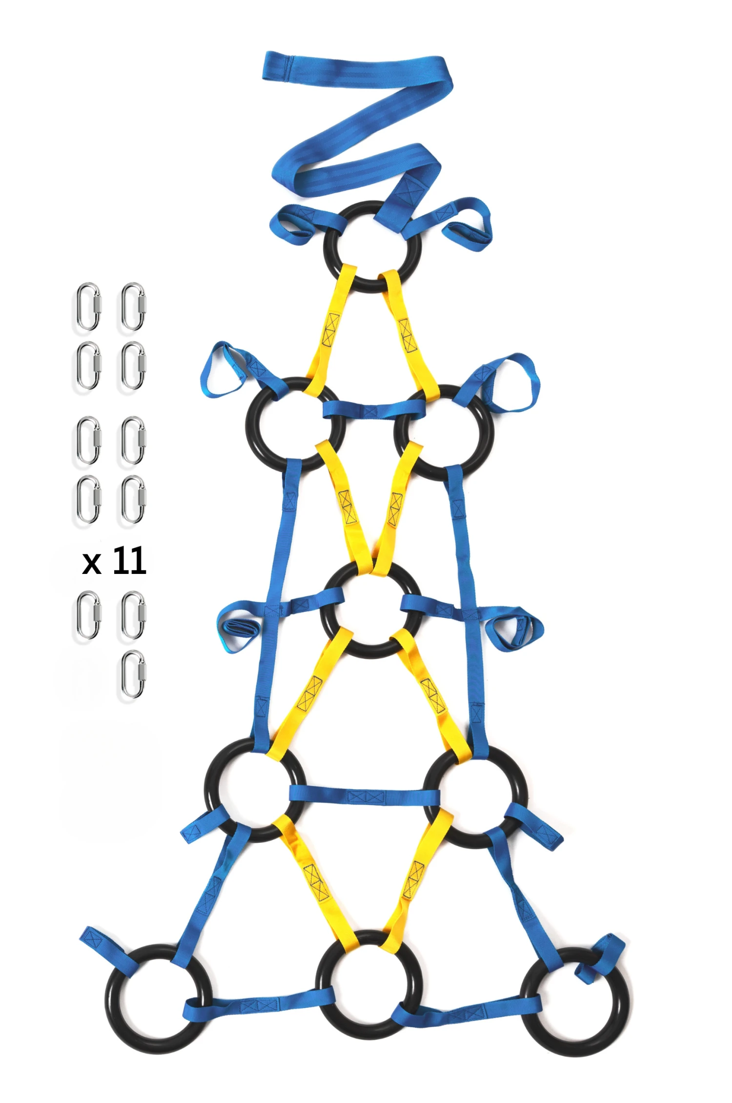 This set comes with 1 clamber panel and 11 carabiners for attachment.