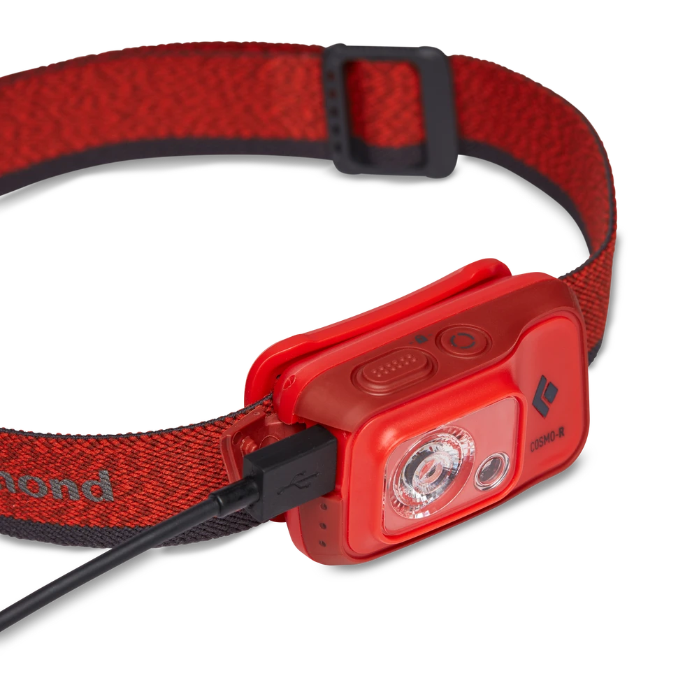 Compact, water-tight and rechargeable, the Black Diamond Cosmo 350-R headlamp provides an all-purpose, 350-lumen beam and a red light function to light up the night at home or on the trail.