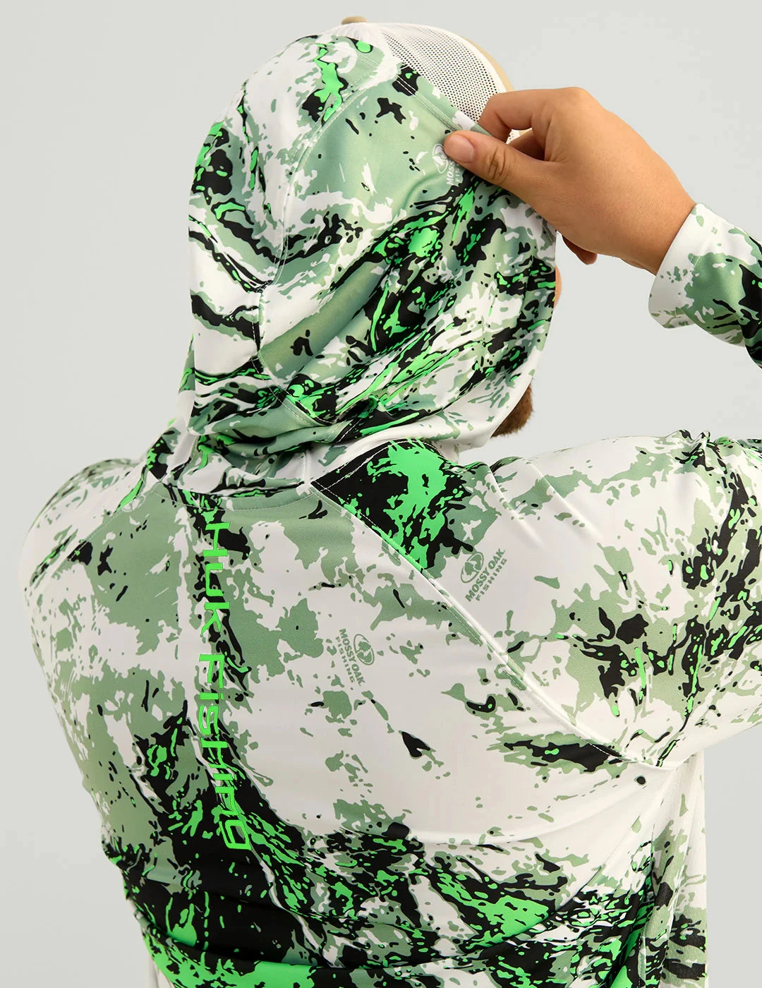 An all new, exclusive pattern Huk built with Mossy Oak that pays tribute to the power of mother nature, while representing the hard working, “hammer down and get it done no matter what” attitude found in those who make a living on the water. They’ve created a design and color palette every fisherman can relate to – choppy seas, charging swells and swirling gray skies.