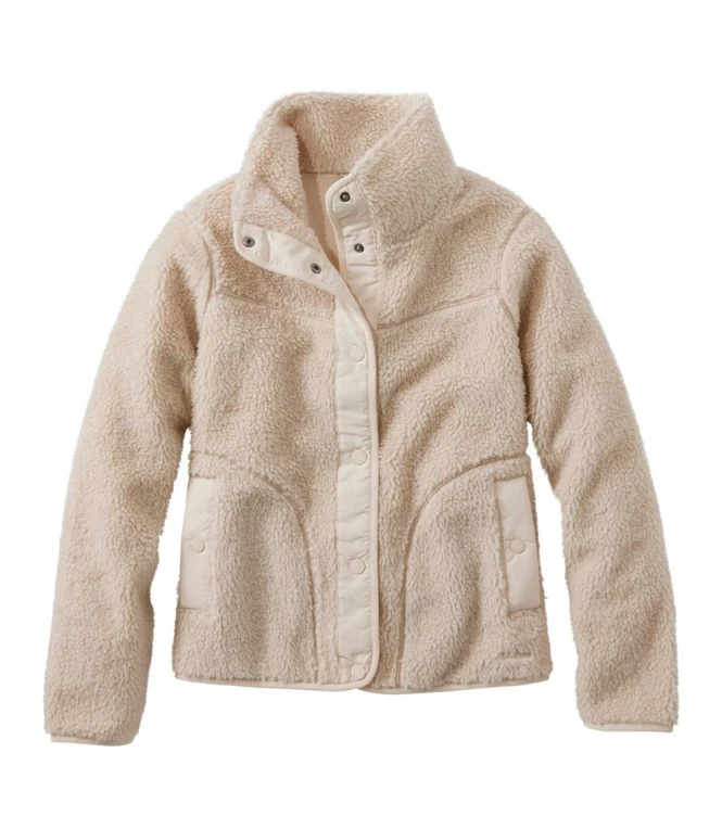 With warm, plush sherpa fleece and soft taffeta-lined sleeves, this fleece jacket offers casual coziness at home, in town or on the go.