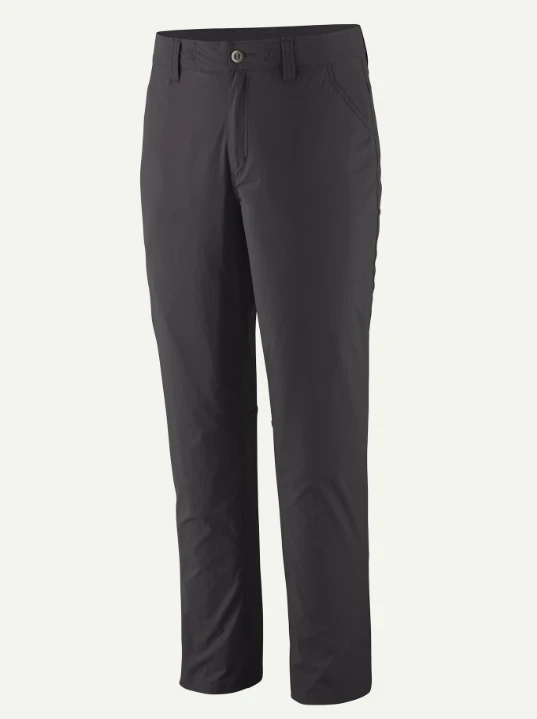 These multifunctional hiking pants are designed for comfort and unconstrained movement, with a mid rise and a sleek, modernized fit to move with you. They’re built of 96% NetPlus® postconsumer recycled nylon made from recycled fishing nets to help reduce ocean plastic pollution/4% spandex plain weave; with a durable water repellent (DWR) finish made without intentionally added PFAS to shed light moisture, and 40+ UPF sun protection. A roll-up cord and a button fastener on each pant leg boosts versatility. Inseam length is 30″; also available in 28″.