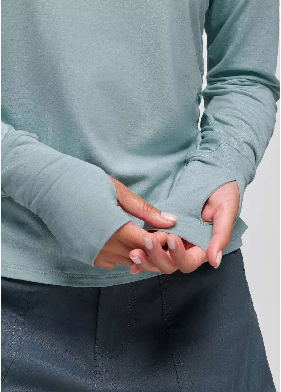 Whether you’re on the backpacking trip of your dreams or planning to spend the day outside, the Sol Searcher Long Sleeve Crew has you covered with UPF 50+ protection. You’ll love the thoughtful details of this long sleeve with rouching on the sides and the thumb holes for keeping the sleeves in place.