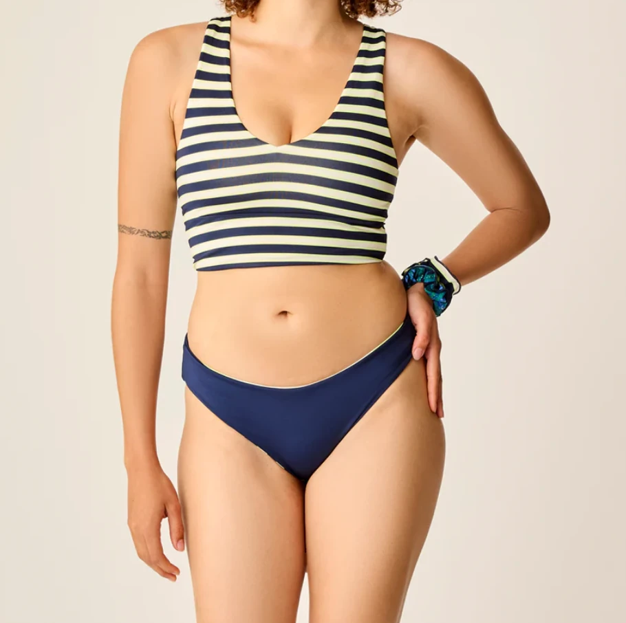A favorite basic bikini bottom turned reversible. This tried, and true bikini bottom provides full coverage, a regular leg length, mid rise, and a shape that works for everyone.