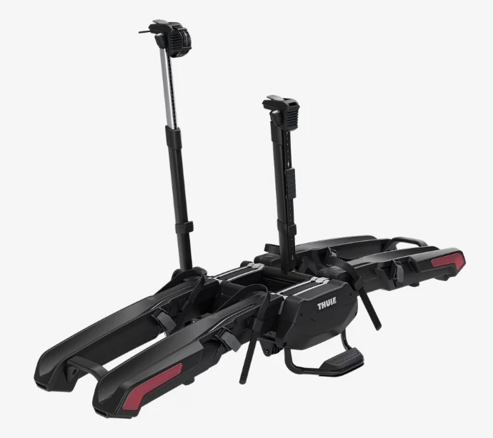 Thule Epos bike rack fits all types of bikes and is fast, easy and convenient to use – it takes minimal effort to mount bikes thanks to an innovative telescopic bike attachment system. The bike arms simply let you attach your bike anywhere on the frame or the rear wheel, providing you with numerous attachment options. You can load and unload up to two bikes in any order – all types of frames and geometries are supported, including ebikes, mountain bikes, gravel bikes, and bikes with fenders and racks.