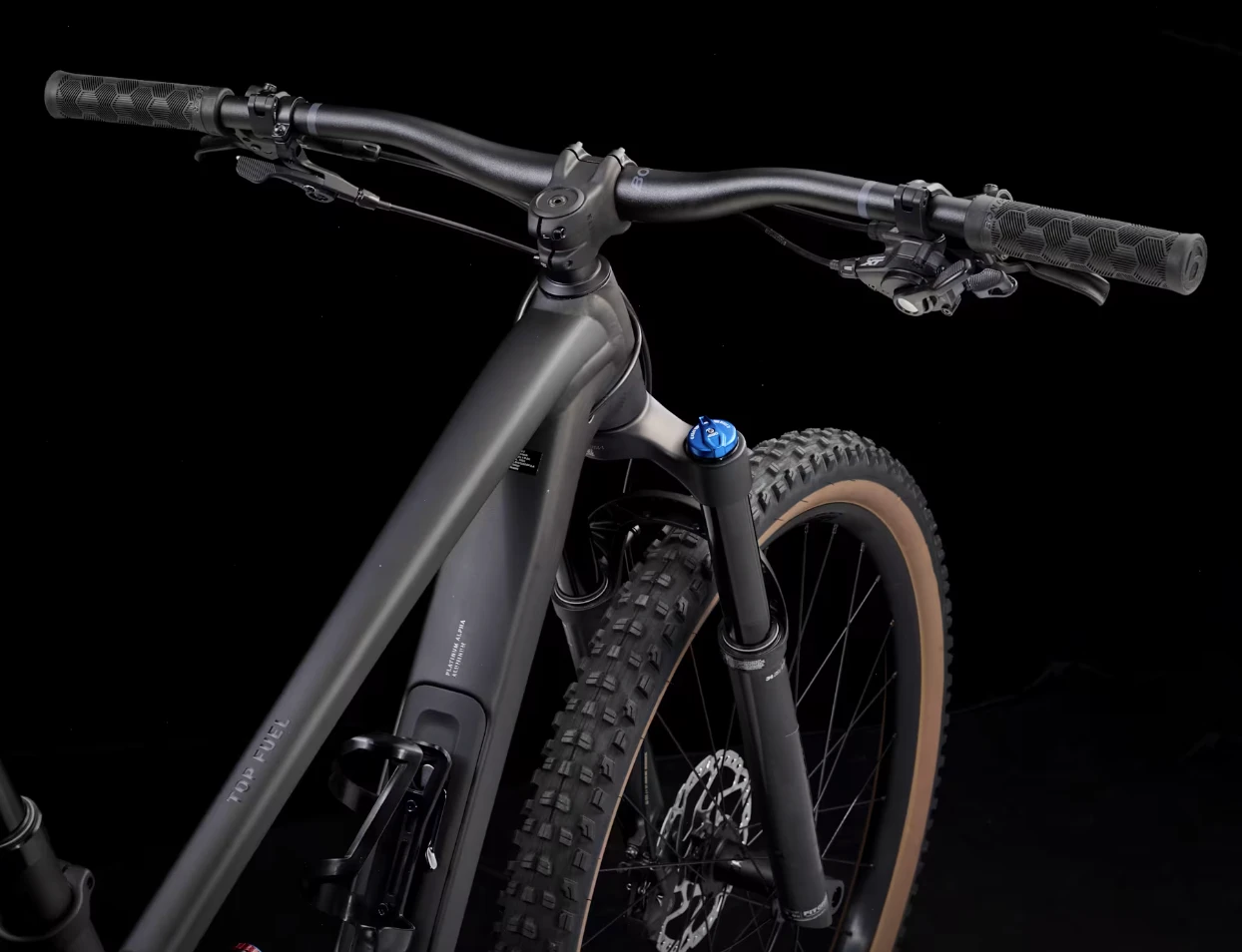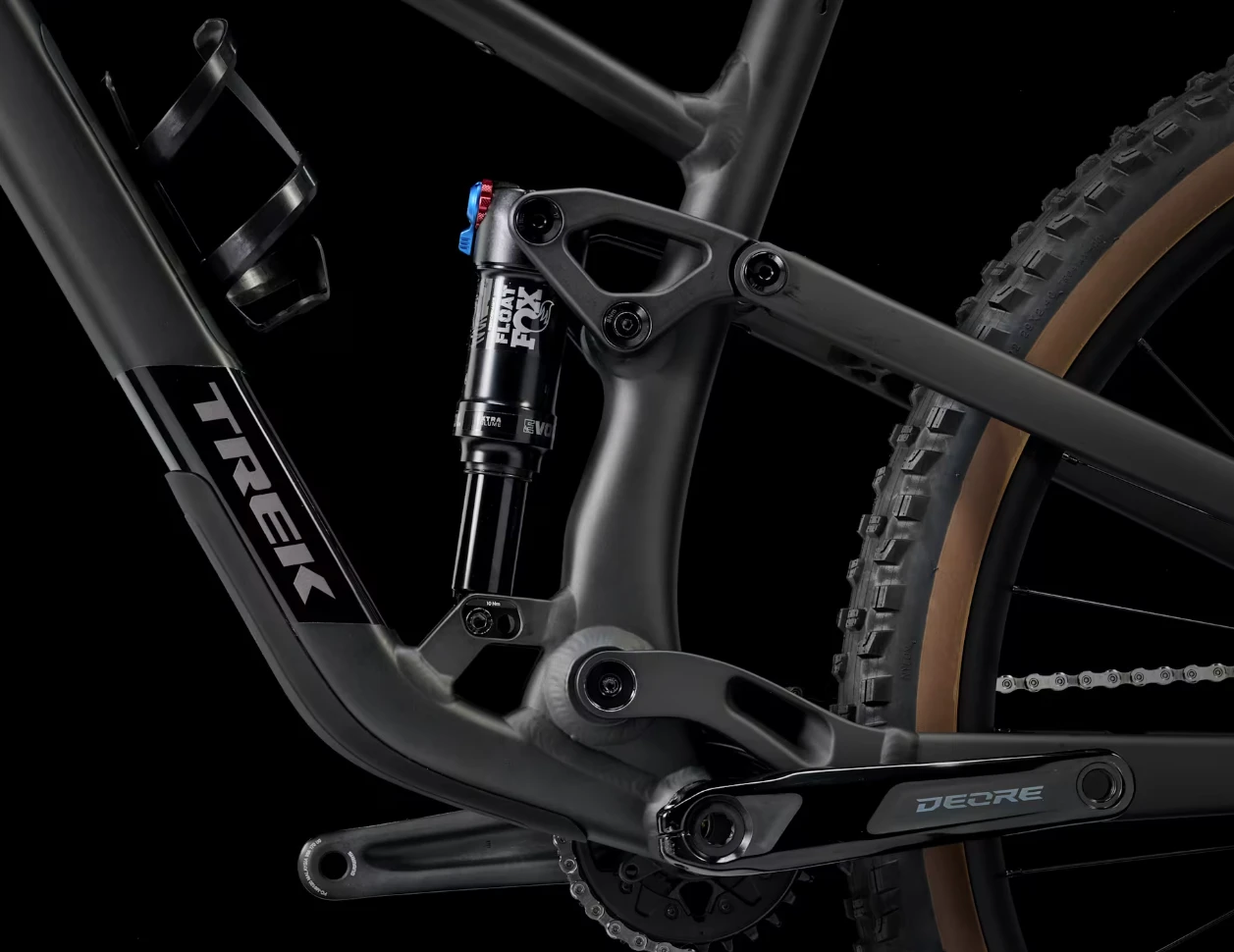 An Alpha Platinum Aluminum frame equipped with a 4-way Mino Link lower shock mount for tweaking geometry and suspension leverage rate. A 130mm FOX Rhythm 34 fork with Float EVOL air spring and GRIP damper, plus 120mm of rear travel from a FOX Performance Float shock with a 3-position damper. It’s topped off with a Shimano XT/SLX 12-speed groupset, hydraulic disc brakes, a Bontrager Line dropper post, and Tubeless Ready Bontrager Line Comp 30 wheels.
